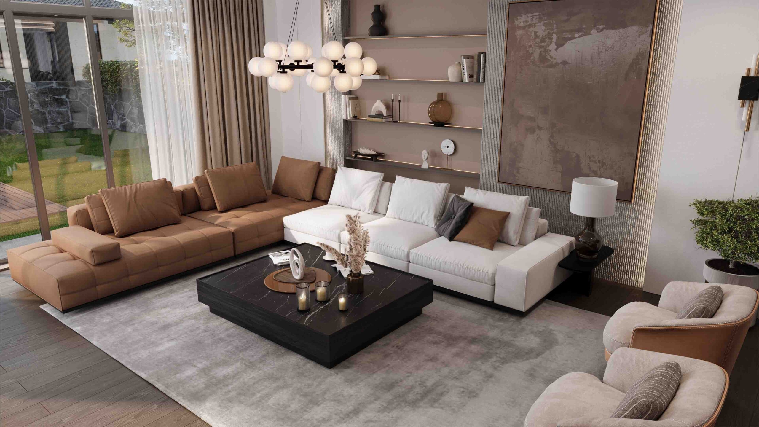 Yumuşak dokular, sıcak tonlar ve zarif dekorasyon detaylarıyla şekilleniyor. Aileyle geçirilen sessiz anlar, film geceleri ya da yalnız başına huzur bulmak için zamanın durduğu nokta.
